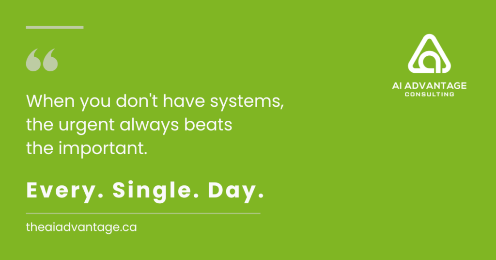 When you don’t have systems, the urgent always beats the important. Every. Single. Day.
