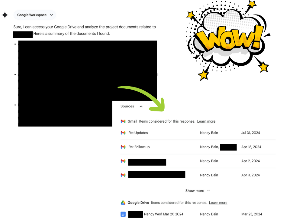 - Response: Gemini references the necessary emails and docs without you needing to manually search.